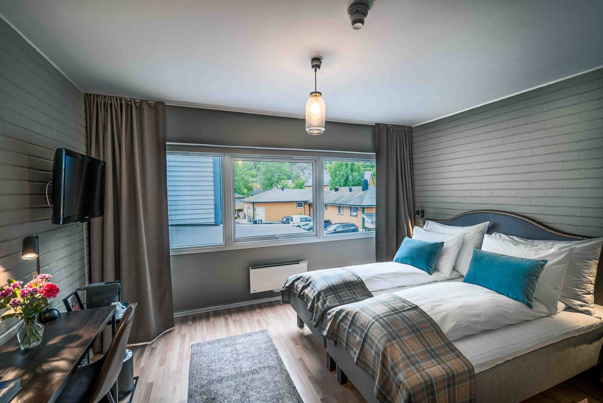 Comfortable Nordic-designed rooms with 2 meter wide Jensen beds, French balcony and spacious bathroom with shower.